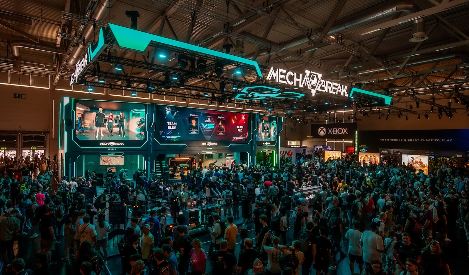 EIDETIC designed the Mecha BREAK booth as a cybernetic hangar to reflect the game’s sci-fi and mecha-shooter identity. With custom weapon props, intricate motifs, and thematic decorations, the entire booth embodied the world of mecha. A full-scale cockpit simulator offered participants an immersive experience of piloting their own mech, earning praise as “one of the most impressive booths at Gamescom.” To highlight the game’s strategic PvPvE battles, a dedicated arena was created, delivering thrilling live matches. The front-facing LED screens broadcasted the action in real time, drawing in large crowds of spectators.